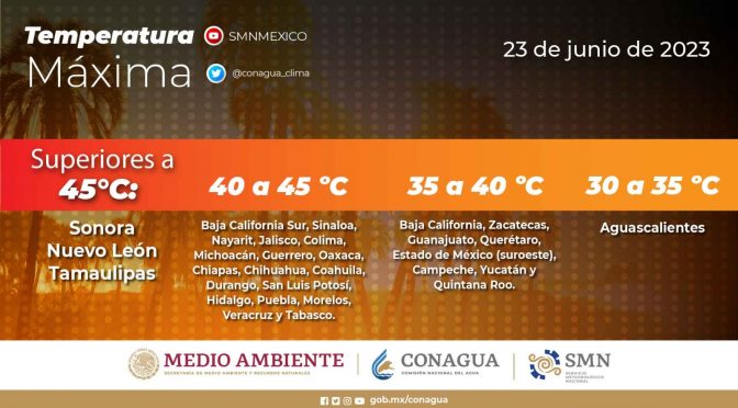 Morelia, Michoacán, 23 de junio de 2023.- Ante las condiciones de calor extremo que predominarán en gran parte del estado de Michoacán, la Secretaría de Gobierno, a través de la Coordinación Estatal de Protección Civil, exhorta a la población a extremar precauciones y tomar medidas de autocuidado. Pronósticos del Servicio Meteorológico Nacional indican que, en zonas […]