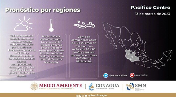 Morelia, Michoacán, 13 de marzo de 2023.- La Secretaría de Gobierno a través de la Coordinación Estatal de Protección Civil invita a la población a tomar medidas preventivas y de autocuidado ante las condiciones de calor que se esperan este día en gran parte del estado. Pronósticos del Servicio Meteorológico Nacional indican que las temperaturas podrían […]
