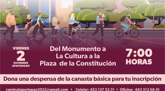 Morelia, Michoacán, 1 de diciembre de 2022.- La Secretaría de Gobierno, invita a las y a los michoacanos de la región Apatzingán a la Caminata por la Paz y los Derechos Humanos, a desarrollarse el día 2 de diciembre del presente año. En apego al sentido humanista que caracteriza la presente administración estatal encabezada por Alfredo […]