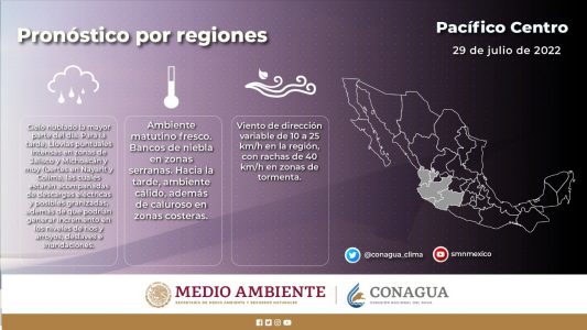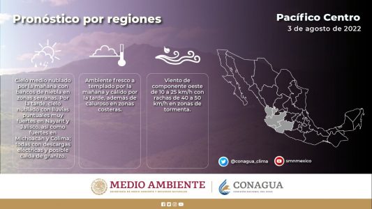 Morelia, Michoacán, 29 de julio de 2022.- La Secretaría de Gobierno a través de la Coordinación Estatal de Protección Civil advierte sobre la presencia de lluvias intensas en el estado ante el paso de la Onda Tropical Número 17. De acuerdo con el pronóstico del Servicio Meteorológico Nacional, para este fin de semana se esperan en Michoacán, […]