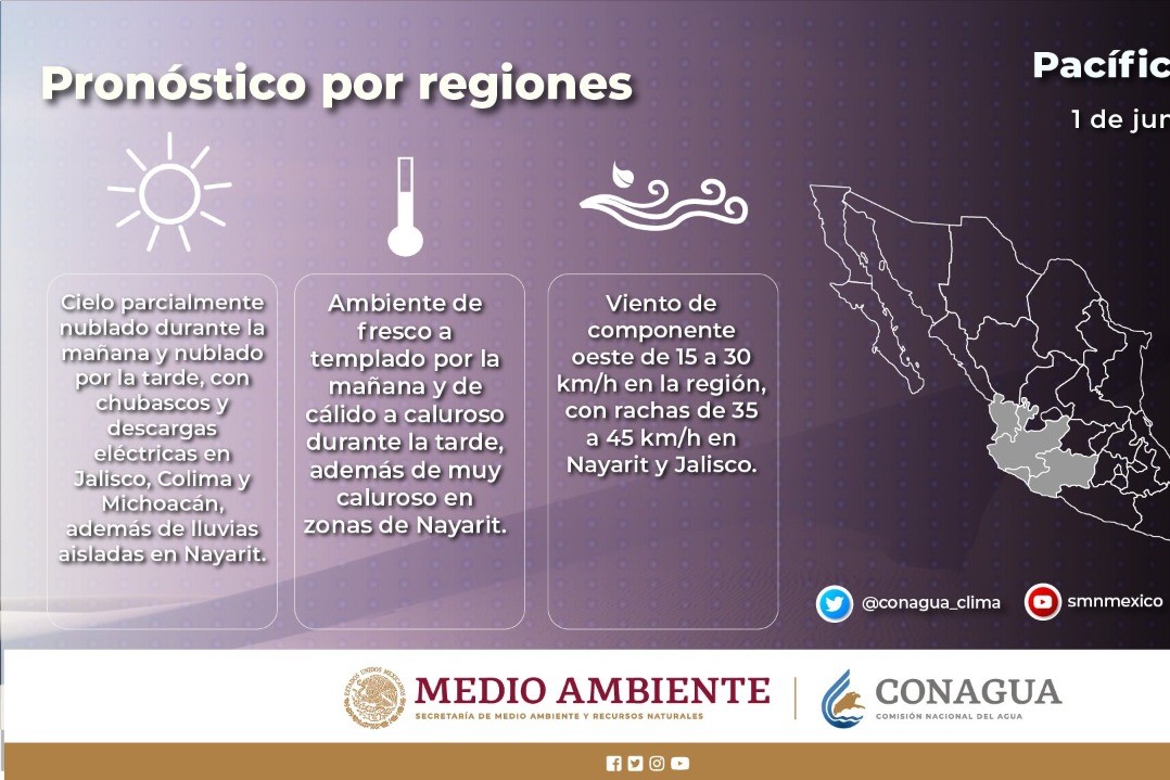 Pronósticos del Servicio Meteorológico Nacional indican que se mantendrá en gran parte del país, incluido el Estado de Michoacán, ambiente caluroso vespertino mientras que por las tardes y noches, se esperan precipitaciones pluviales fuertes acompañadas de descargas eléctricas y posible caída de granizo.