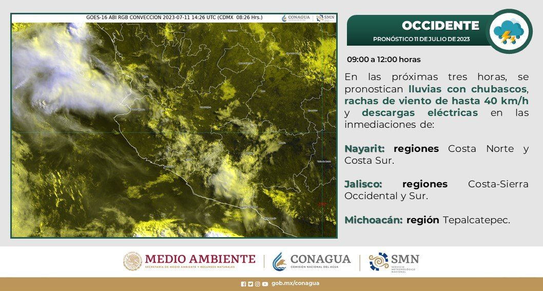 Morelia, Michoacán, 11 de julio de 2023.- La Secretaría de Gobierno, a través de la Coordinación Estatal de Protección Civil invita a la población a mantenerse alerta ante las condiciones de lluvia que se esperan en las próximas horas.