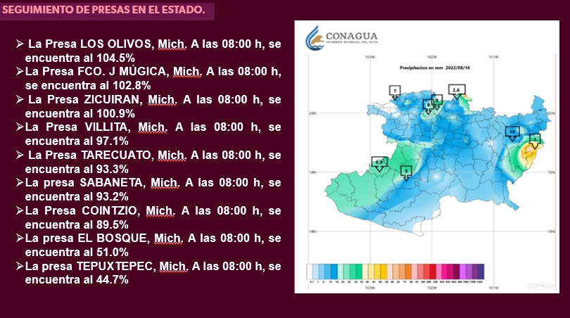En atención permanente de PC a nivel de presas en Michoacán