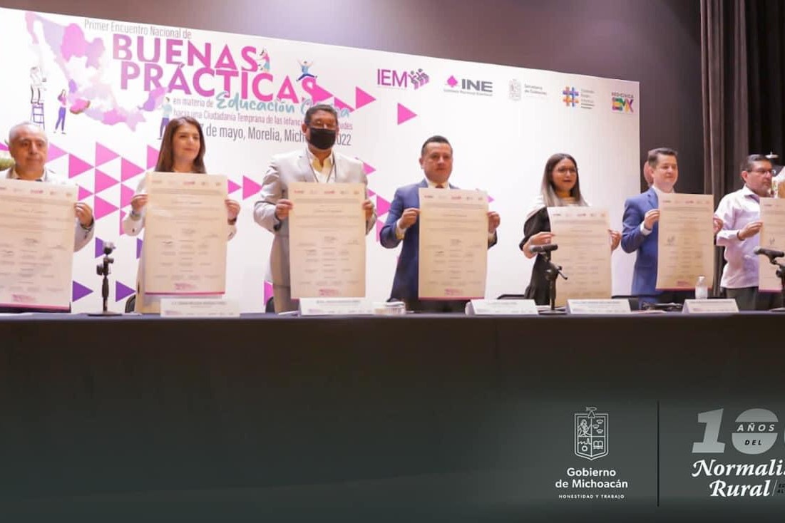 Durante este encuentro, se realizó también la firma-compromiso con representantes de distintas instancias que reforzará el reconocimiento y promoción de espacios de participación infantil y juvenil. Participaron en la inauguración del evento representantes del Instituto Nacional Electoral; el Ayuntamiento de Morelia; la organización Tejiendo Redes Infancia de América Latina y El Caribe; la organización Red Cívica Mx; la Subsecretaría de Derechos Humanos y Población; la Secretaría Ejecutiva de Protección Integral de Niñas, Niños y Adolescentes; así como los partidos políticos, entre otros.
