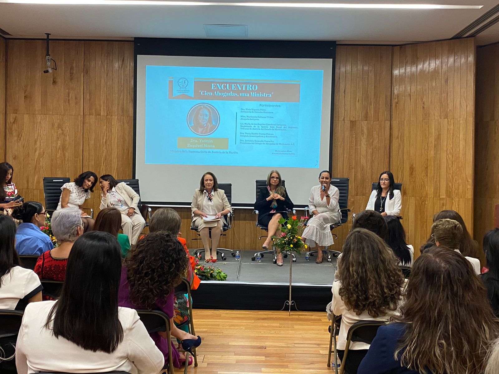 Morelia, Michoacán, 13 de mayo de 2022.- La Secretaría de Gobierno, a través de la Subsecretaría de Derechos Humanos y Población participó en el encuentro “Cien Abogadas, una Ministra” un espacio organizado por el Colegio de Abogadas de Michoacán para fortalecer los espacios jurídicos para las mujeres.