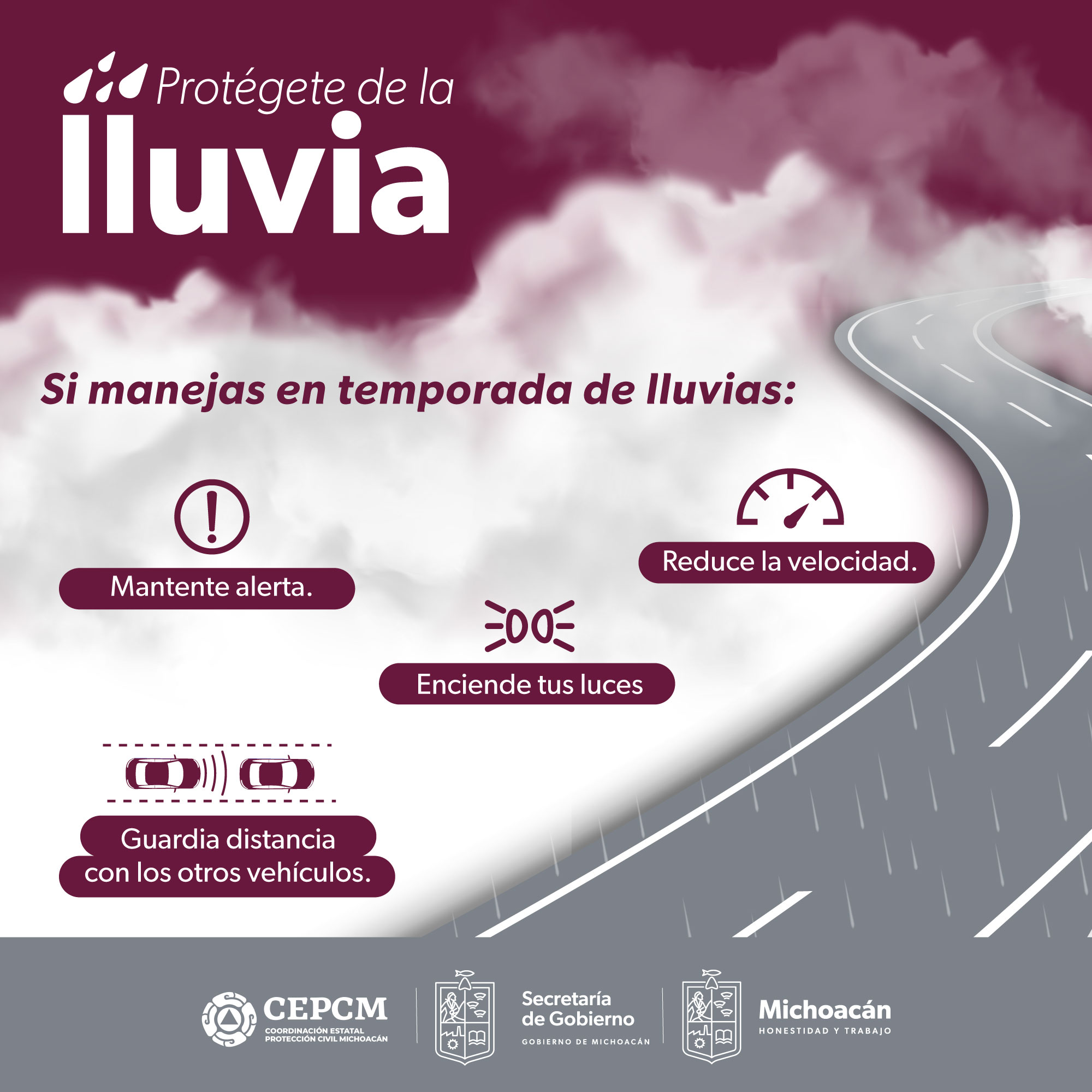 Morelia, Michoacán, 17 de agosto de 2023.- La Secretaría de Gobierno a través de la Coordinación Estatal de Protección Civil invita a la población en general a tomar medidas preventivas y de autocuidado ante la probabilidad de lluvias fuertes en las próximas horas ocasionadas por el huracán “Hilary”.
