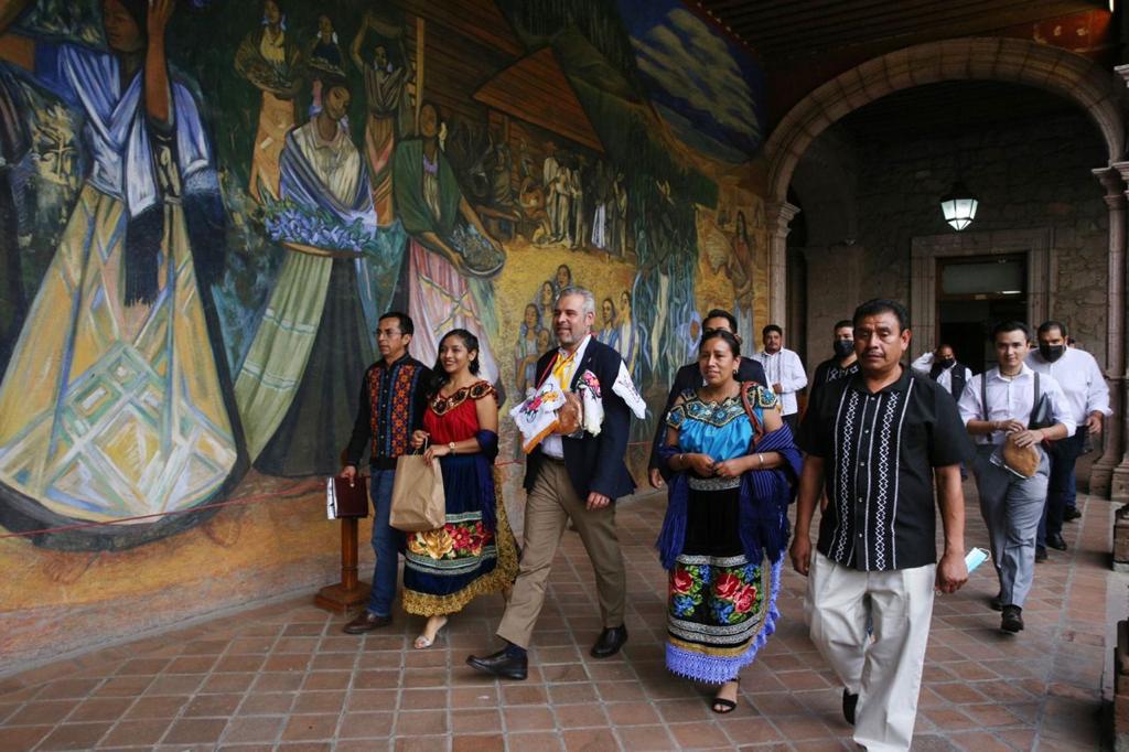 En hechos sin precedentes, el propio gobernador Alfredo Ramírez Bedolla recibió en la puerta principal de Palacio de Gobierno a las y los integrantes de los consejos de los pueblos originarios.