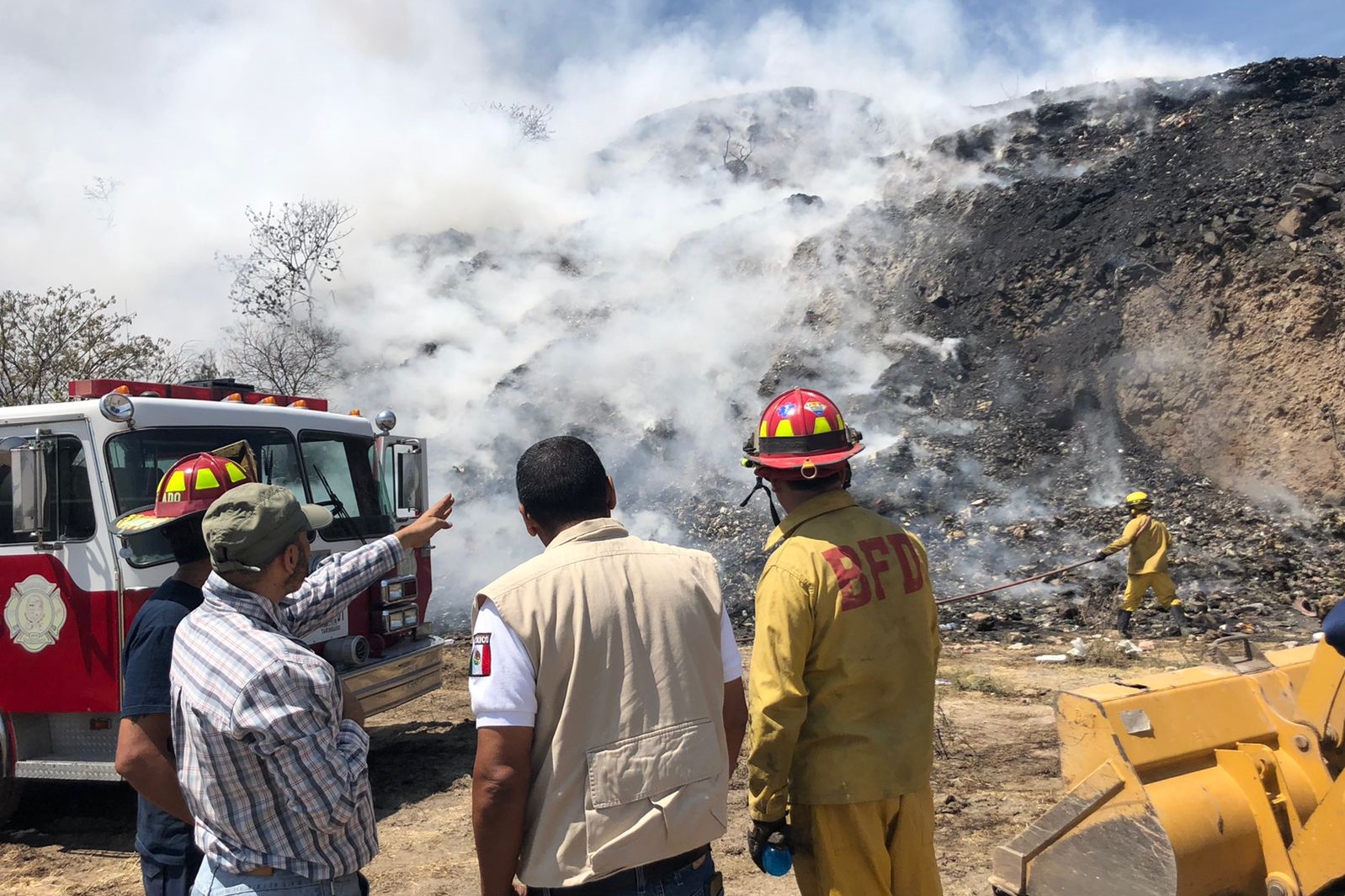 Trabaja PC estatal para mitigar el fuego del relleno sanitario de Copándaro